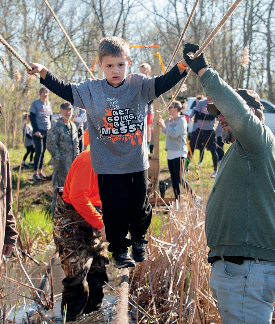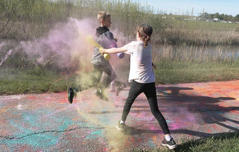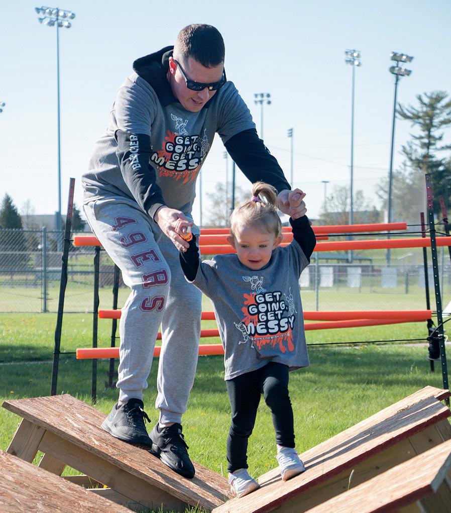 SOLON — Participants in the annual dash were able to attempt many different obstacles at the Solon Recreation and Nature Center (SRNA), including a human hamster wheel, car wash, plank walk, and brand new rope obstacle. There was also a particularly messy obstacle, called “Spartan Decontamination,” in which volunteers sprayed colored powdered dye at participants as they ran past, leaving adults and kids alike covered in a variety of hues. This was a favorite of many kids, including local student Reagan, who volunteered to spray the participants with the powder. Reagan, who was covered in the powder herself, said that she couldn’t wait to spray her sister, who was going to be running by later.