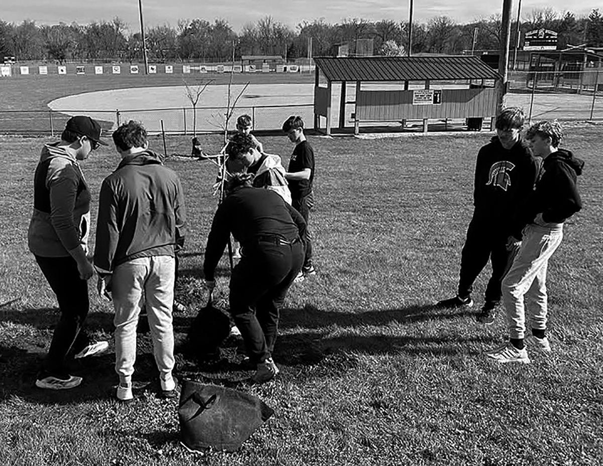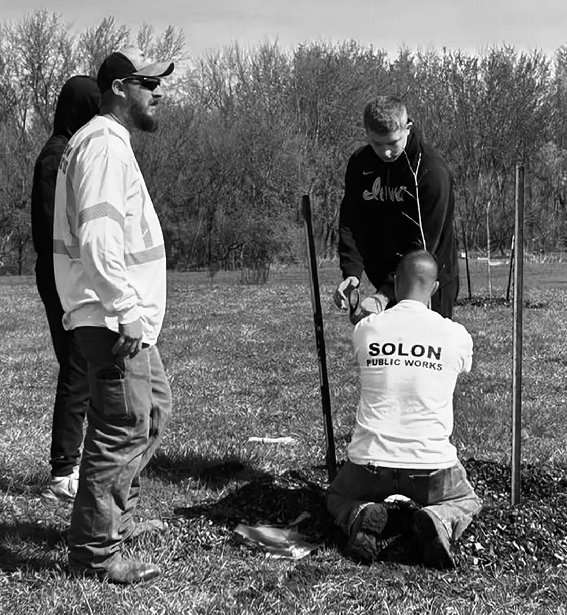 Top left: Solon High School students teamed up with city employees to plant trees at the SRNA Tuesday, April 22, in recognition of Earth Day and to replace trees lost to the August 2020 derecho. Above top: Solon High School students teamed up with city employees to plant trees at the SRNA Tuesday, April 22, in recognition of Earth Day and to replace trees lost to the August 2020 derecho.