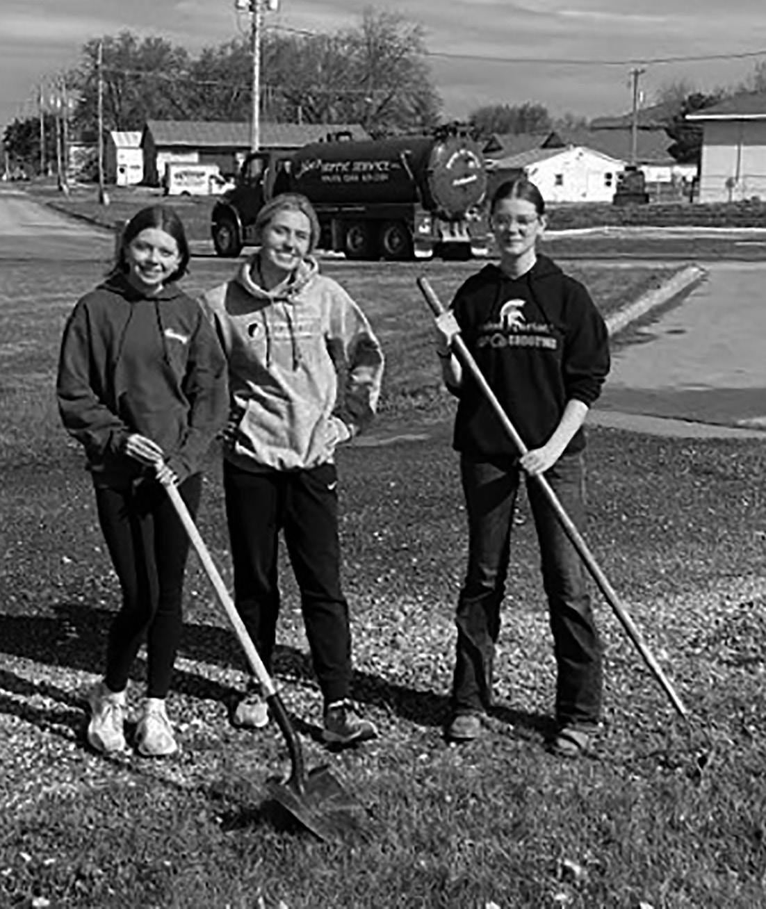 Left: Solon High School student teamed up with city employees Tuesday, April 22 in recognition of Earth Day, to perform various tasks at several locations around Solon. Here, a trio of students is seen at the Public Works Department. Above bottom: Solon High School student teamed up with city employees Tuesday, April 22 in recognition of Earth Day, to perform various tasks at several locations around Solon. Students are seen here spreading mulch at the entryway to the SRNA.