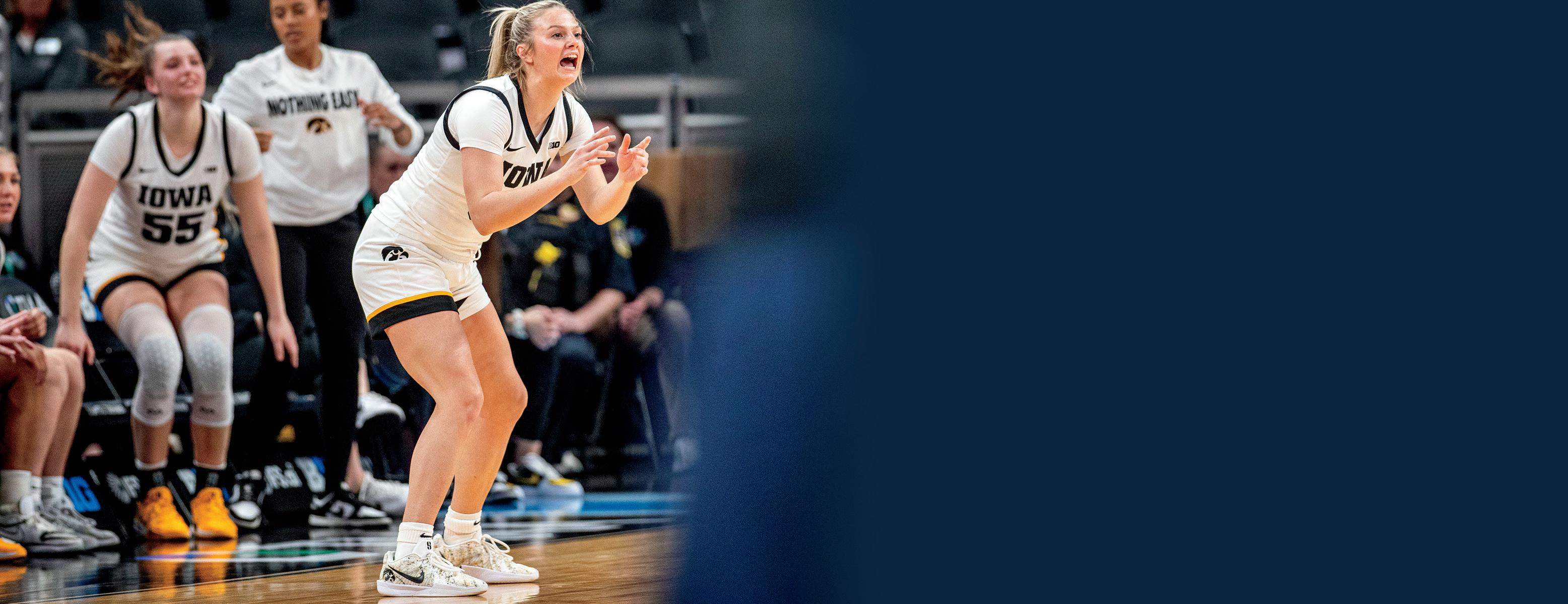 Solon graduate Callie Levin calls for a pass during the Iowa-Wisconsin game in the Big Ten Tournament at Gainbridge Fieldhouse in Indianapolis on March 5. The freshman played nine minutes and tallied three assists and a rebound in the Hawkeyes' 8154 win. Last year as a senior at Solon, Levin was named Miss Iowa Basketball and led the Lady Spartans to a state championship. The Hawkeyes will receive their seeding and assignment for the NCAA Tournament on March 16.