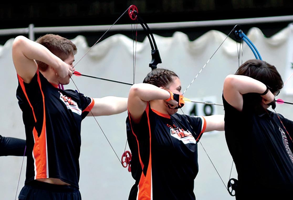 comes a practice round at 15 meters followed by three scoring rounds. Each round consists of five arrows with 50 as the highest possible score per round and a perfect game being 300. Solon’s archers qualified in bullseye and 3-D (aiming at a replica of a deer).