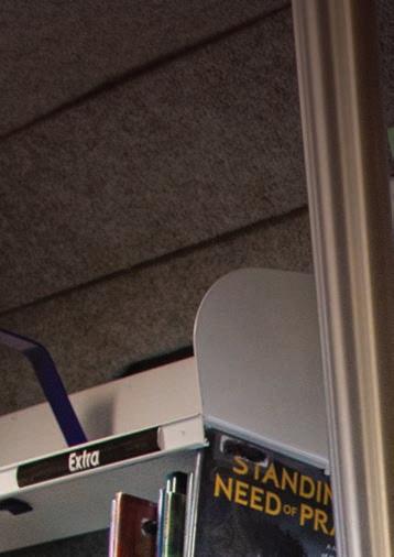 as the welcoming atmosphere mirrors the atmosphere of a traditional library. The long walls of the vehicle are lined top to bottom with shelves of children’s books, topical fiction, genre literature, sought-after DVDs, and everything in between.