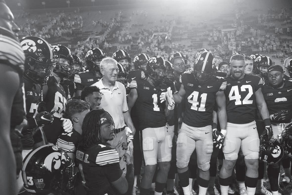 Bowen can’t help but scrutinize. That’s his job with ESPN, where he pores over film as a football analyst. e ecting on that season, he points out potential victories that slipped out of reach. Certainly not against powerhouses Oklahoma State University and Penn State University, but versus Northwestern University, Indiana University, and even No. 17 University of Minnesota in the season finale, the awkeyes lost by single digits.