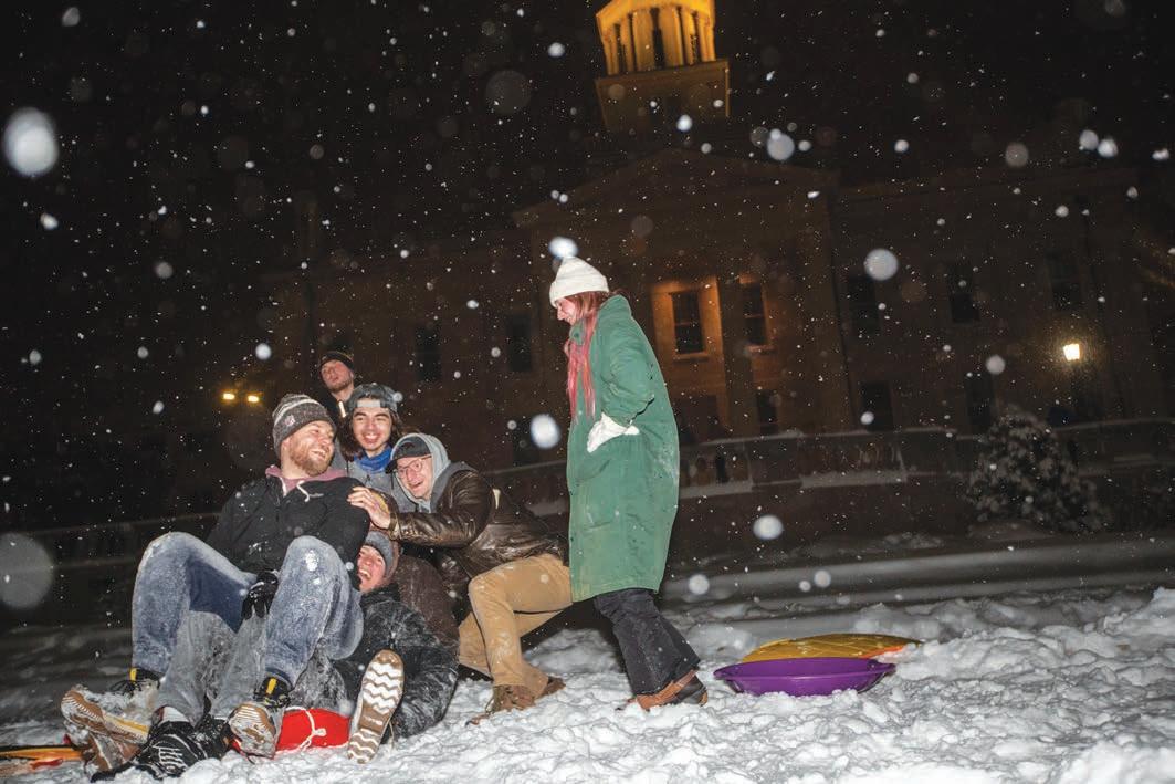 So far, the weather predictions for this upcoming winter look promising for snow lovers throughout the Midwest. With hilly terrain and heaps of snow expected to come, sledding is the best way to take advantage of winter delights. Hickory Hill is only a short 10-minute drive from campus, giving students a convenient option to access a perfect park for sledding — though campus itself has decently tall hills with plenty of ideal slopes for shredding some snow.