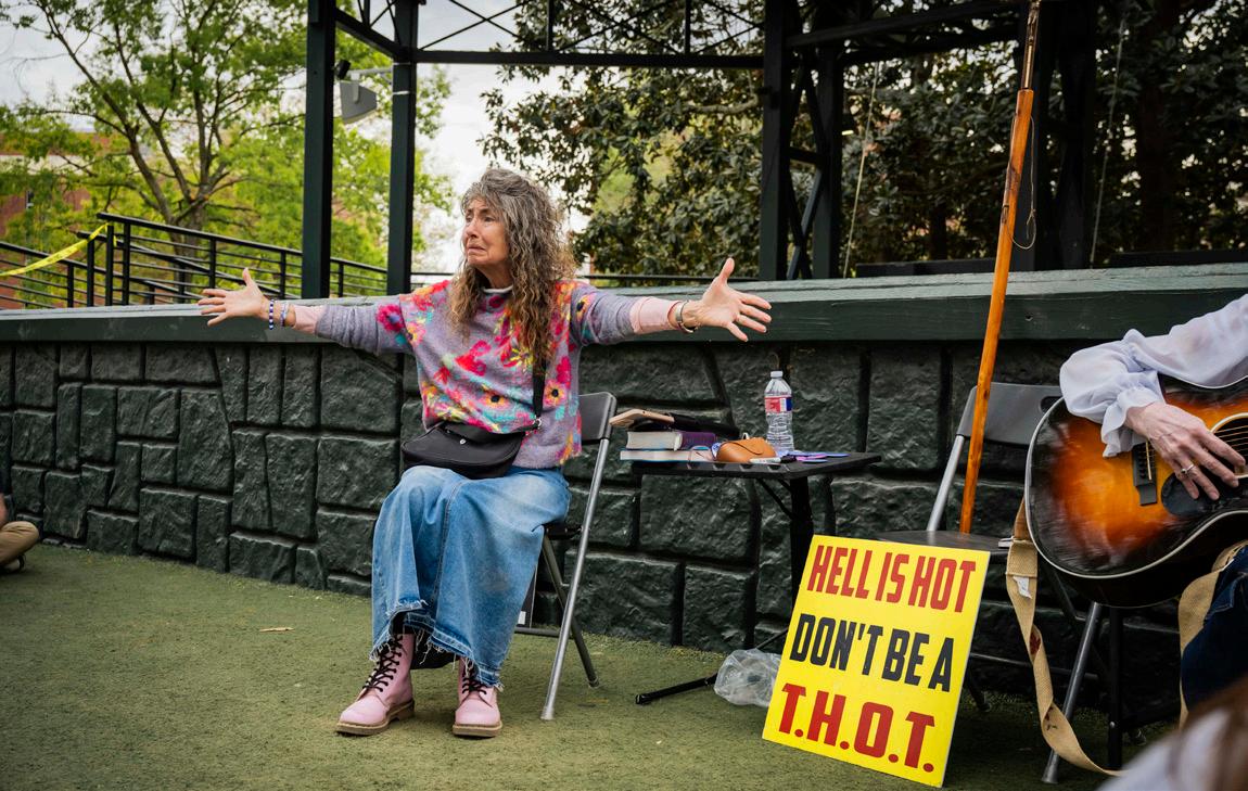 Viral TikTok evangelical preacher Cindy Smock, known as “Sister Cindy,” visited the University of Mississippi on Tuesday, March 24, drawing students to the Grove Stage for her lesson in what she calls “Ho-ology 101.”