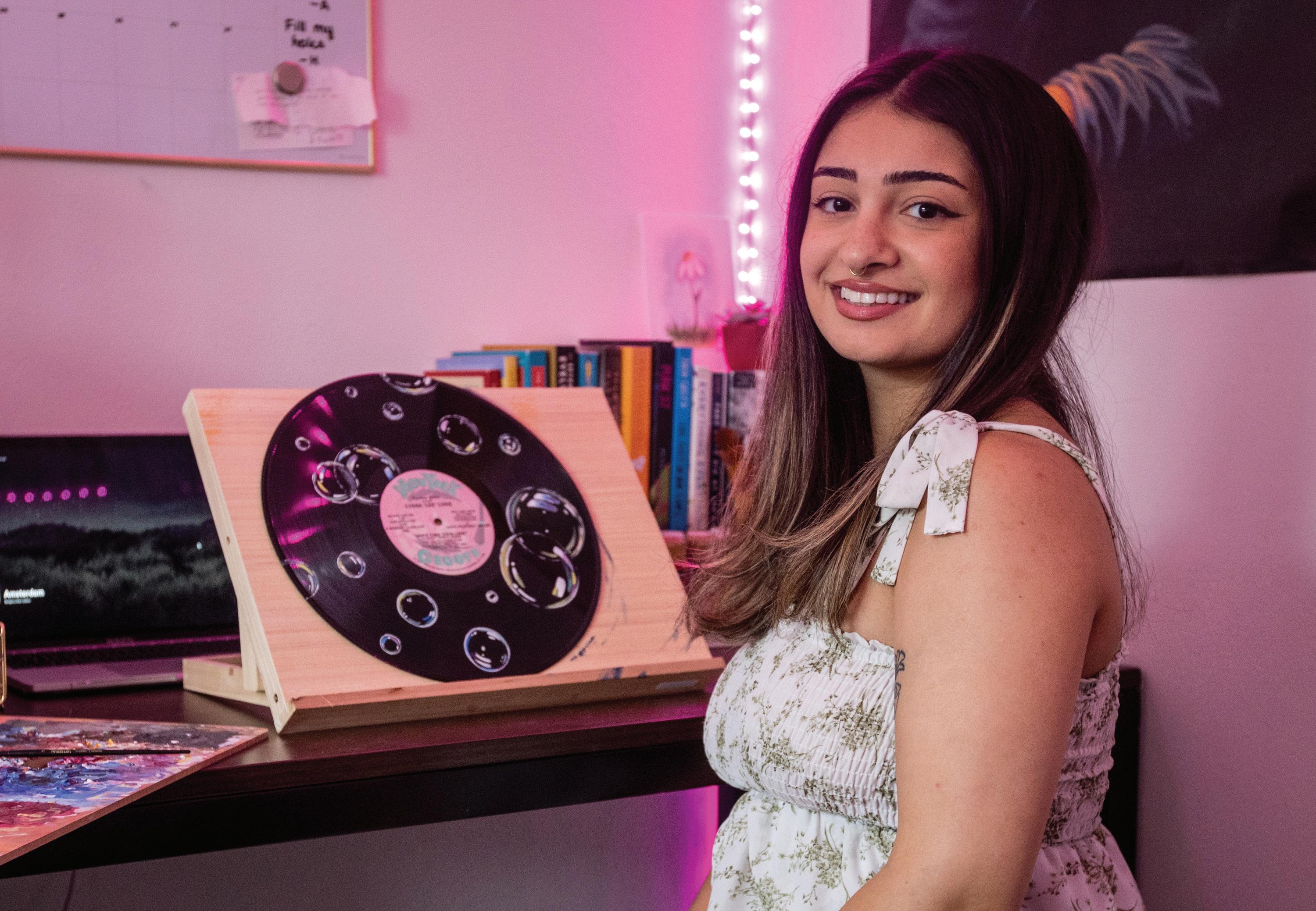 Other vinyls she has painted include realistic bubbles, mushrooms, and hands touching —and the bubbles are her favorite.