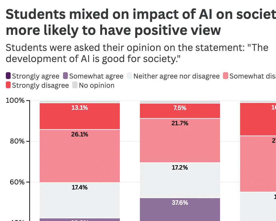 An overwhelming majority of students felt that current events were negatively impacting their mental health at 74.6% — compared to only 2.4% who said the e ect was positive. Similarly, but to a lesser degree, 50.9% said academics were negatively impacting their mental health and 20.8% said it was a positive factor.