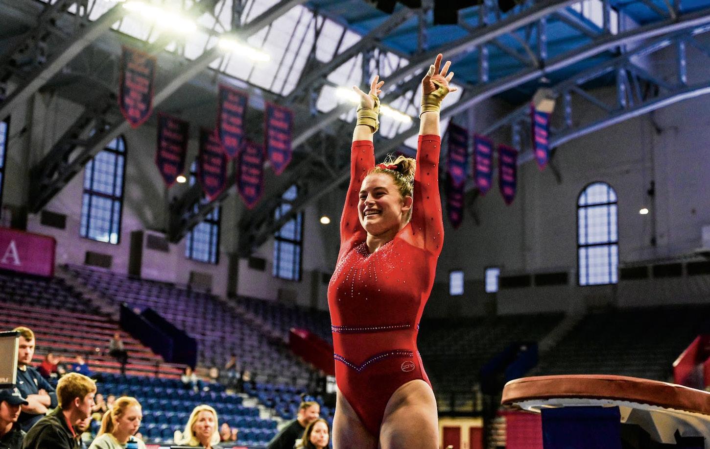 ey was well-grounded throughout her back handspring, back layout series, and front toss. Murphy, who joined the program from the University of Maryland last fall, delivered an incredible routine, hitting every skill while staying grounded. She earned the highest score of the rotation, a 9.800.