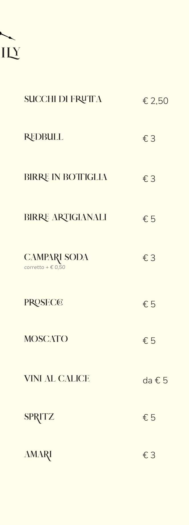 Menù Caffetteria