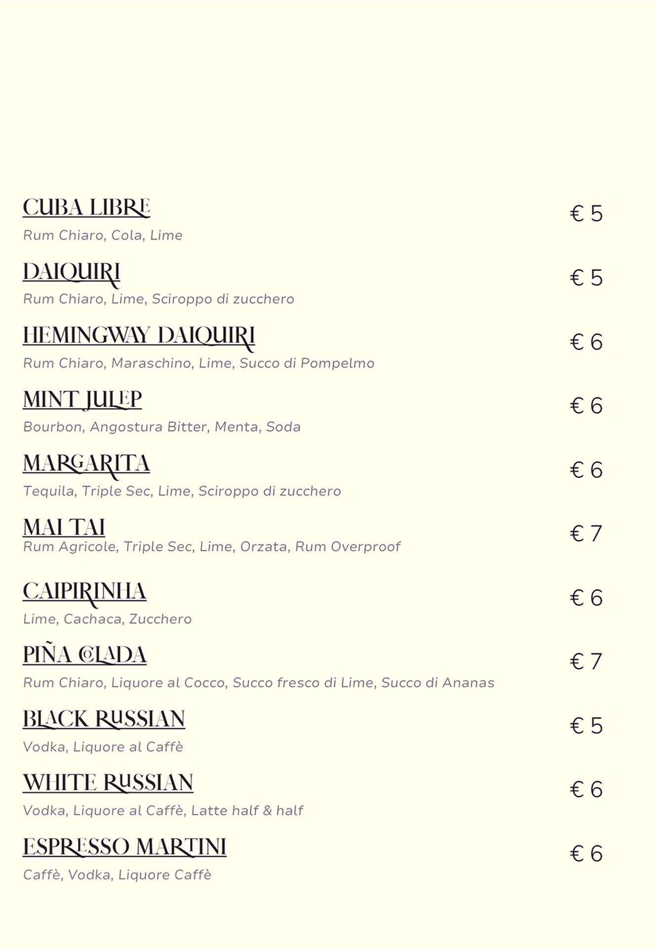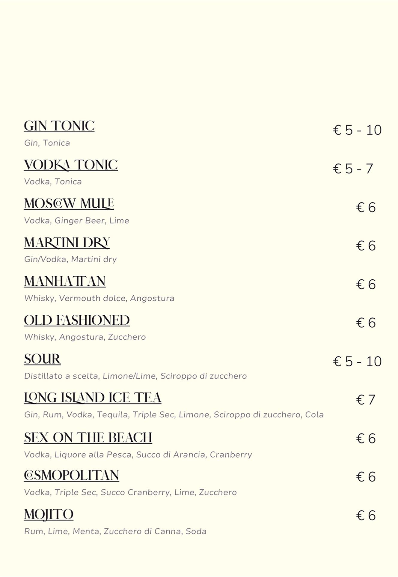 Menù Cocktail