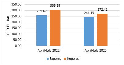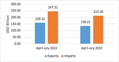 2023 were USD 213.20 Billion as against USD 247.31 Billion during April-July 2022.
