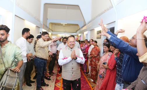 Shri S.K. Mehta, IFS, Ex-Chair man-DPA , while demitting office, recevied overwhelming and emotional farewell by the HODs, officials and workers of DPA, they gave a rousing floral farewell to him. Refer Pg. 6