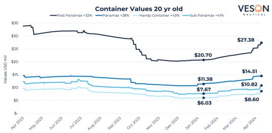 L O N D O N : C o n t a i n e r values have risen significantly across almost all sectors and age categories since the start of the year.