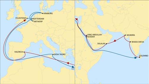 ExportcargofromJeddahmaybetransshippedviaKing Abdullah Port, Valencia and NWC Europe hubs in order to reachdestinations.