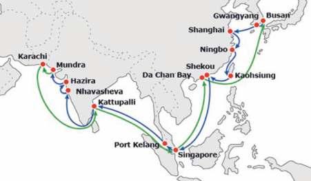 The port rotation of the new service is Abu Dhabi Port (UAE), Hamad Port (Qatar), Jubail Port (Saudi Arabia), Abu Dhabi Port (UAE), Karachi Port (Pakistan), Mundra Port (India), Hazira Port (India), King Abdullah Port (Saudi Arabia), Alexandria El Dekheila Port (Egypt), Canakkale Port (Turkey), Tekirdag Port (Turkey), Canakkale Port (Turkey), Aliaga Port (Turkey), Mersin Port (Turkey), King AbdullahPort(SaudiArabia),andJebelAliPort(UAE).