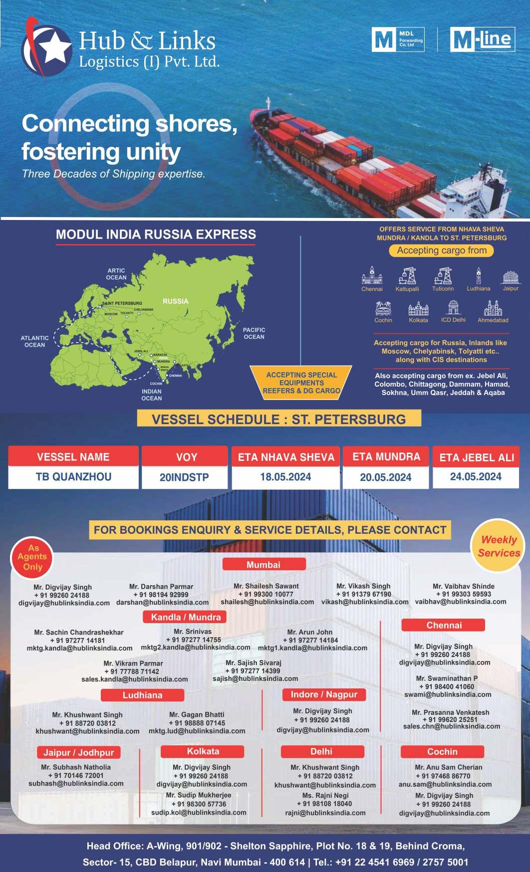 Indial Indial Shpg. San Antonio,Arica,Buenaventura,Callao,La Guaira,Paita, 24/0525/05 24/05 0900 Conti Courage IP421A Puerto Cabello, Puerto Angamos, Iquique Santiago De Cuba, Mariel (EPIC / IPAK) Globelink Globelink WW USA,Canada,Atlantic & Pacific,South American & West Indies Ports. AMI Intl. AMI Global South American Ports Via Antwerp (Only LCL). Dronagiri-3