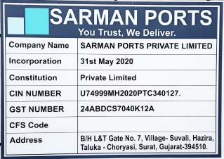 Pvt. Ltd., a prominent & well acknowledged Logistics provider, has announced the inauguration of its third state-of-the-art Container Freight Station (CFS) facility in Hazira, Surat. Operating under the name of Sarman Ports Pvt. Ltd. This new facility is strategically located with excellent connectivity to Hazira Port. ItwillcatertothePrimary,Secondary&Tertiarymarketsof Hazira, offering a range of services that will significantly benefit Shipping & Logistics community.