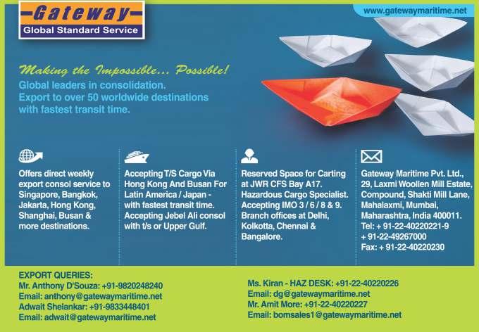 18/10 17/10-1700 Maersk Kensington 441W 24330 Maersk Line Maersk India Salallah, Port Said, Djibouti, Jebel Ali, Port Qasim. (MECL) 19/10 TO LOAD FOR INDIAN SUB CONTINENT PORTS & COASTAL SERVICE In Port —/— SSL Gujarat 161 24333 SLSSLS Hazira, Cohin, Mangalore, Tuticorin, Mundra. (PIC 1)