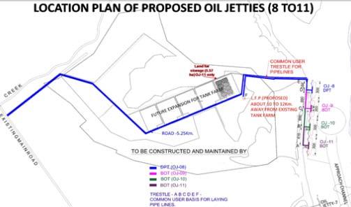 The estimated Project Cost of developing this Oil Jetty is Rs.123.40 Crore where the project is to be implemented through PPP mode and the Concessionaire shall arrange the financing for the Project. While the construction period is estimated to be of 24 months the Concession Period will be for 30 years. The project will follow a revenue Share Model of RoyaltyPerTon.