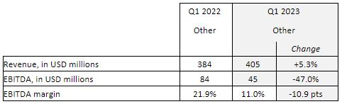 RevenuestoodatUSD12.7billioninthefirstquarter of2023,drivenmostlybytheGroup’smaritimeshipping business. EBITDA came to USD 3.4 billion, representinga61.3%decreaseandanEBITDAmargin of27%,down21.7points.