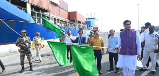 m.v MSS Galena was flagged off by Hon’ble Minister at 1600 hours on 05.05.2023 at Tuticorin and commenced her first voyage with her next call scheduled at Male on 07.05.2023. The vessel sailed with 285 TEUs and cargo mix consisted of diverse commodities viz. construction material, PVC Pipes, Cement, Organic Manure, Food itemslikeVegetablesetc.
