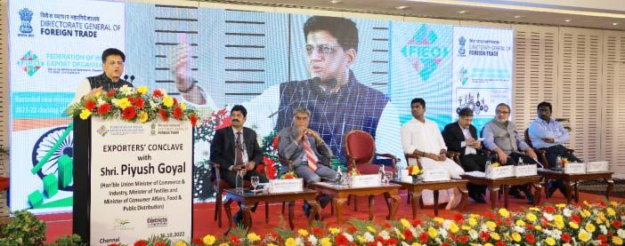 The Minister was speaking at the Exporters Conclave held at Chennai in this context current geo political scenario to discuss the issues and the way forwards to keep the growth momentum. The session was participated by a large number of leading exporters from Tamil Nadu comprisingvarioussectorsofexports.