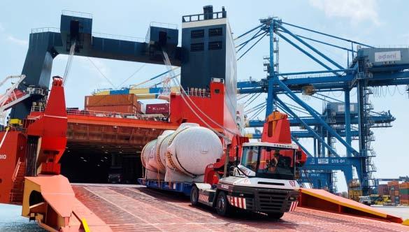 Transworld Shipping and Logistics Ltd., and Ignazio Messina Line, loaded 16 Steel Pressure Tanks weighing upto 50 M.T. on state of art RORO-Container ships that are world largest RORO - Container ship every deployed. The RORO-Container vessel Mv Jolly Quarzo Voy 265- Sailed from Mundra on 26thSeptember2022.ThisisthehighestvolumeofSteel PressureTankoverMAFIeverloadedpersinglevessel callfromAdaniTerminalsinceitsinception.