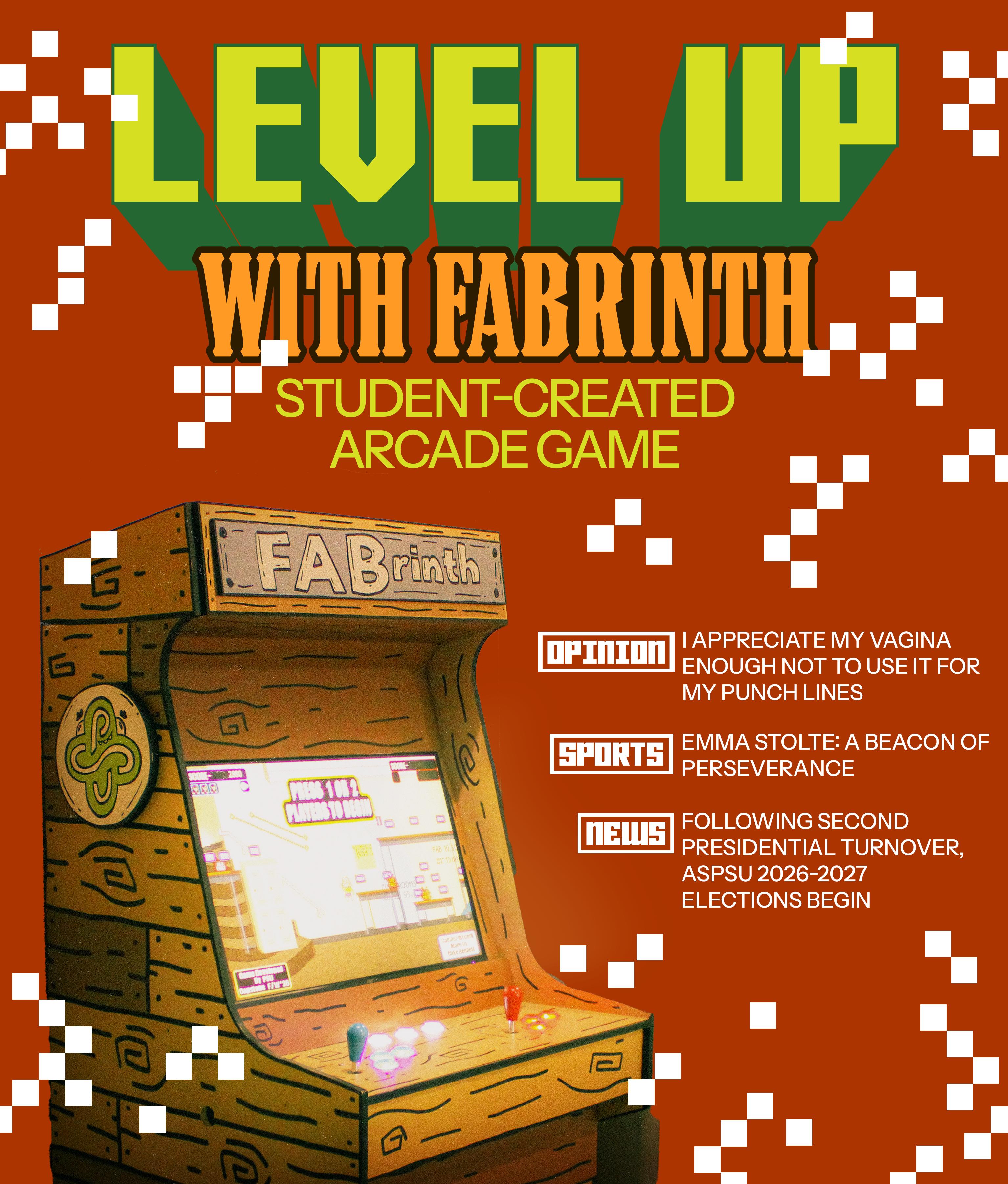 The game, “FABrinth,” takes place in the basement of the Fourth Avenue Building. While playing, you get to pick one of six characters: Mr. Dr. Boss Man, HEADMASTER, Inspector Packet, DAILY ORACLE, Indominable Force and LoZo-GoGo, all representing PSU staff members and Moon himself. The single or two-player game continues with the chosen character(s)