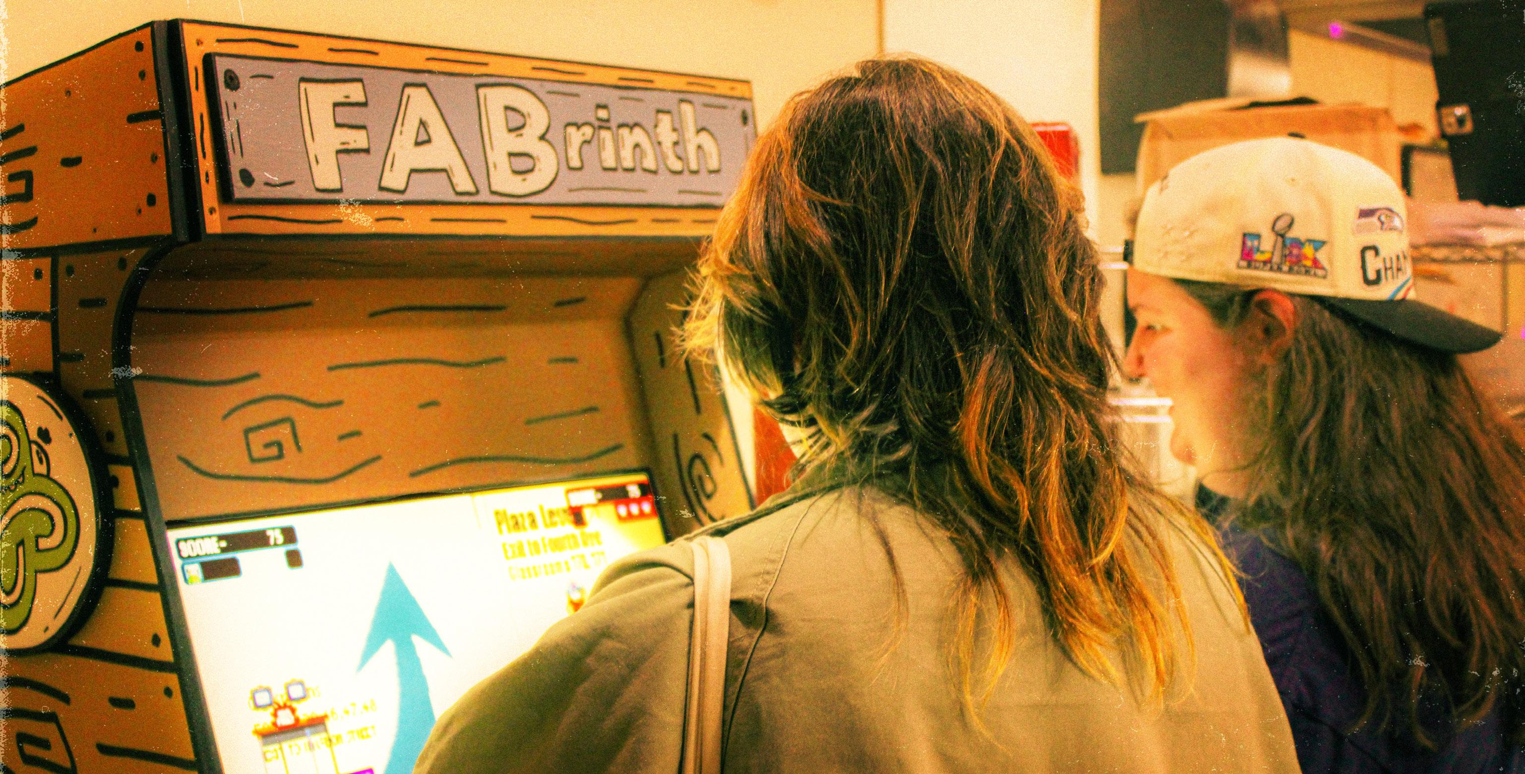Moon hopes to add more cabinets to Wild Rose Coffee — at least 15 — and to make it an arcade of students’ senior capstone projects. As a way to support students and future projects, FABrinth has a QR code to donate to the developers; the money is split between the students and building a new arcade cabinet.