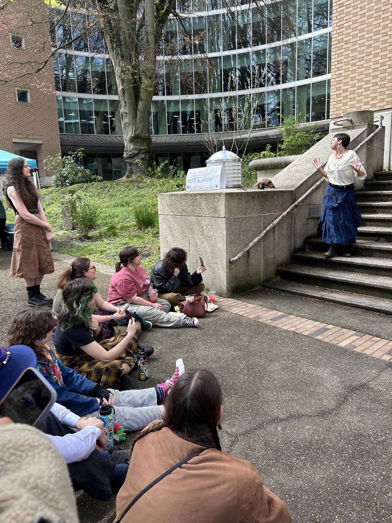 Throughout the three hours of performance, the audience fluctuated. Many bystanders came to sit, watch and sing along.