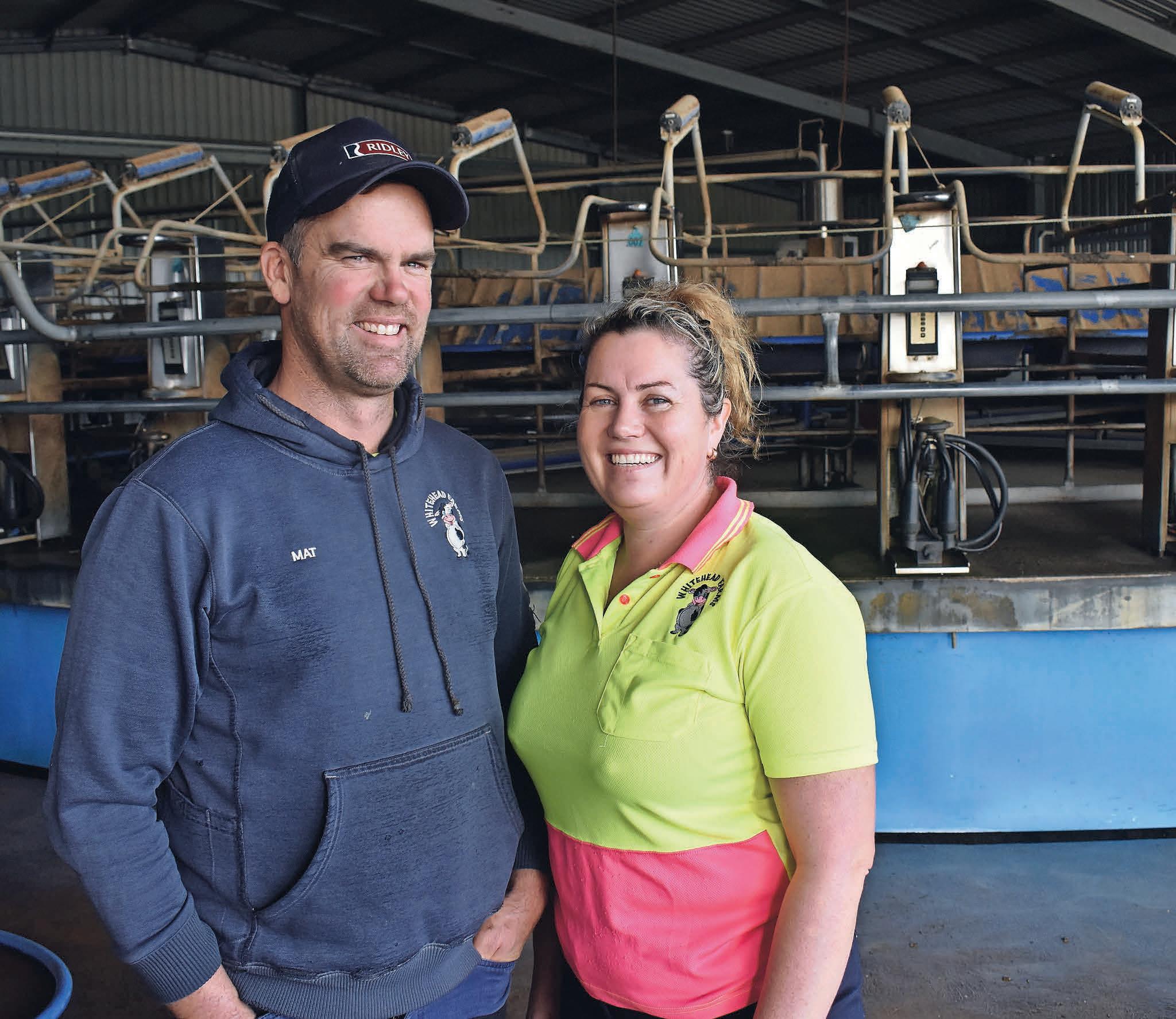 Mat and Renee Whitehead are enjoying the certainty of a three-year milk price with their mostly Holstein herd. The rotary dairy shed and shelter.