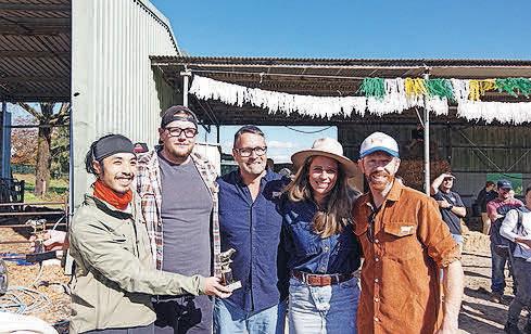 The crew from The Stokehouse, St Kilda Beach — chefs, baristas, cheesemakers, and front of house — attended the barista day. They are (back, from left) Larni Mitchell, Abdul Qudor, Javier Beltran, (front) Matteo Gallo, Josh Lewis, Julia Will with Sallie Jones and Steve Ronalds, co-founders of Gippsland Jersey and hosts of the barista day. Julia Will