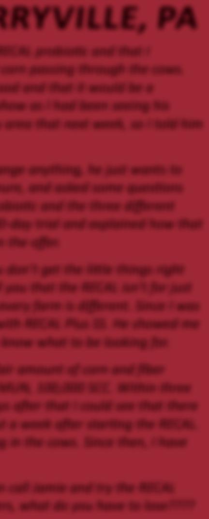 “We service not only the dairy industry,” Sauer said. “We pick up exotics and equine; and we can take sheep and goats, which were never allowed in traditional rendering. We have been able to ll a real void to help people out with livestock mortalities. It has been very consistent. We are picking carcasses up every day.”