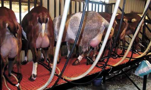 theSUBMITTED PHOTO Goats are milked in a swing-6 parlor at Sparkling-M’s Dairy Goats near Li le Falls, Minnesota. The dairy farm, owned by Missy Isder, has a herd of 150 head with 65 being milked twice each day.