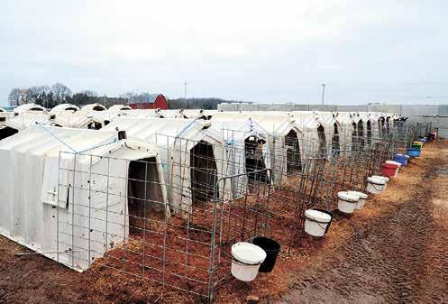 The Hakalas feed 90 calves in outdoor hutches and put up a shed next to the hutches to store calf supplies. At around 5 months of age, heifers are sent to a custom raiser and return home around eight weeks before calving.