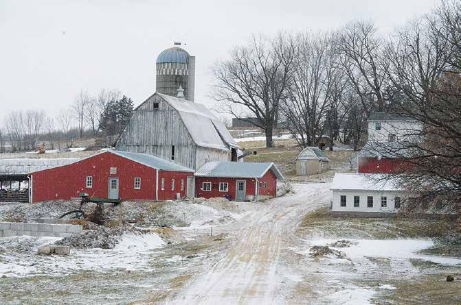 glasses in the barn is an entirely different thing. Going in and out of a warm humid barn during cold winter days presents the challenge of how to keep glasses from fogging up. I would get frustrated having to wait for my glasses to clear before I could see what I was doing. Instead of waiting, I pushed the glasses up on my head and out of my way as I nished bedding cow stalls. I only needed to wear them for close-up work. In general, I could see what I was doing without them. Once I was done bedding cows and ready to move to the next job, I realized I couldn’t nd my glasses. Apparently, they must have slipped off my head as I bent down to get the straw under a cow and fell in the gutter. It would take a miracle to nd them. I always imagined we would nd them on the head of a deer or fox out in the elds.