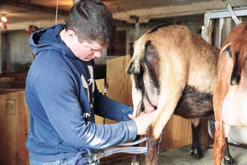 stead, he wipes the teats with his hands to rid any debris and places the milker on. Nigon said they have not had any problems with this system. The milk produced is used for the kids and the extra goes to ve bottle calves.