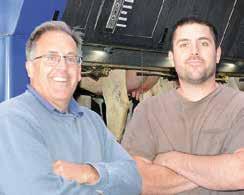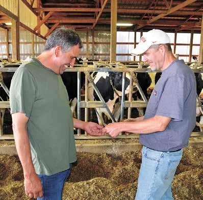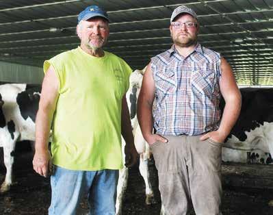 New facility provides cow comfort, labor efciencyDANIELLE NAUMAN/DAIRY STAR (le ) and Ryan Harm stand in their freestall barn and parlor June 20 near Cado , Wisconsin. Before building their facility, the Harms were milking their cows on two farms.