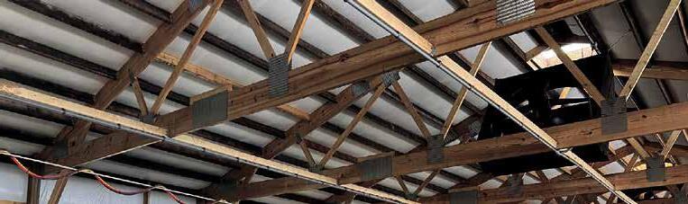 Birds just love this barn. The webs in these trusses are easy nest areas for birds. They also restrict air flow which leads to poor ventilation and moisture buildup in the building.