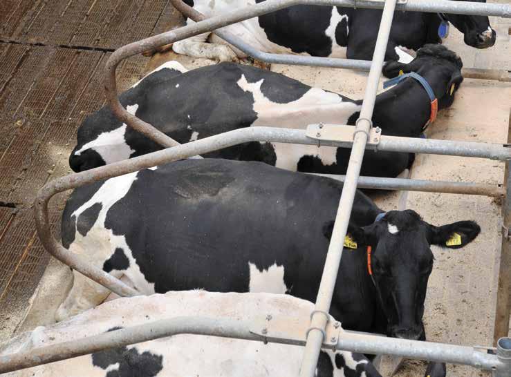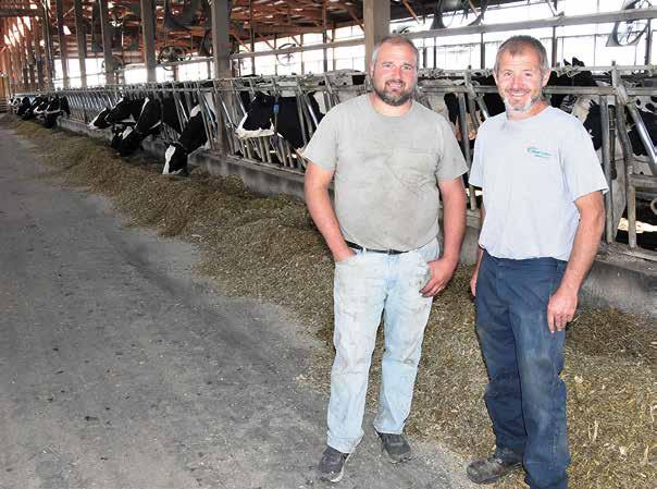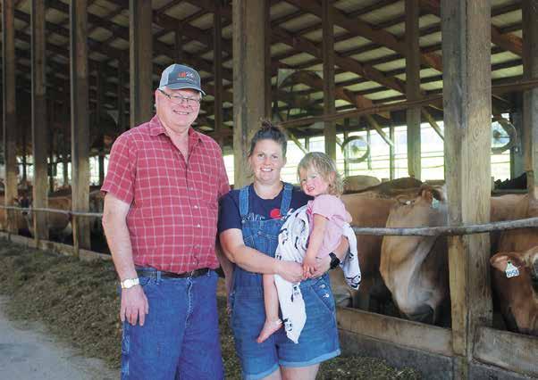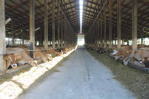 holds mostly Jersey and JerseyHolstein crossbred cows, while a freestall barn houses the Holsteins. The herd is intermingled during milking time when they switch groups. Their son Derek