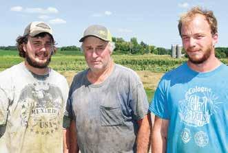Caleb (from le ), Allen and Jared Wickenhauser stand Aug. 2 on their dairy farm near Cologne, Minnesota. The Wickenhausers milk 100 cows, farm 350 acres and raise 35 to 40 dairy steers. Turn