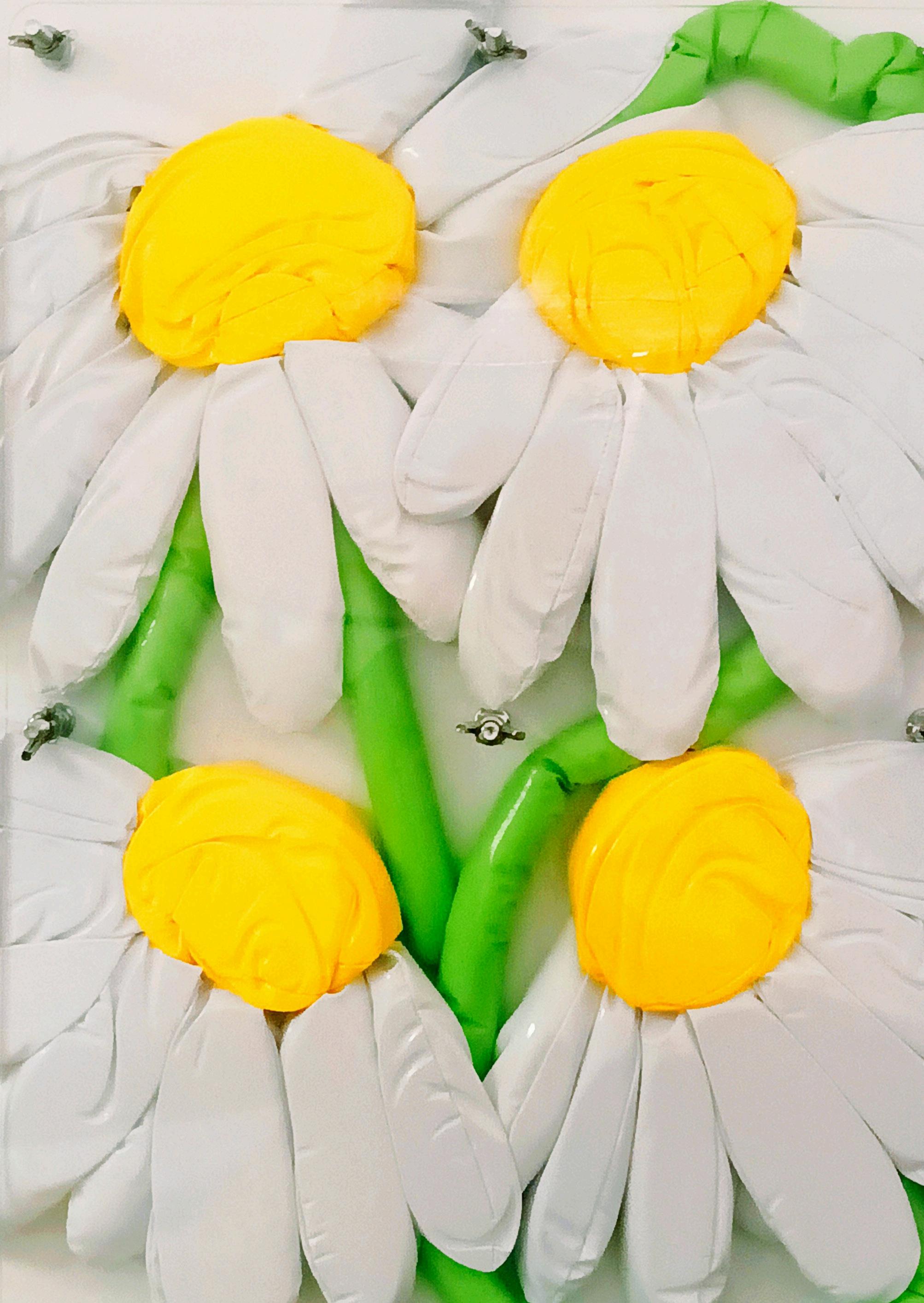 Working with hand-sewn soft sculpture, Hamlyn takes everyday objects and shifts them off course. Things feel pressed, deflated or held in place, like moments that have just passed or memories caught mid-way through fading. There’s often a sense you’ve arrived just after something’s happened, the aftermath of a celebration, or the remnants of something once full of life.