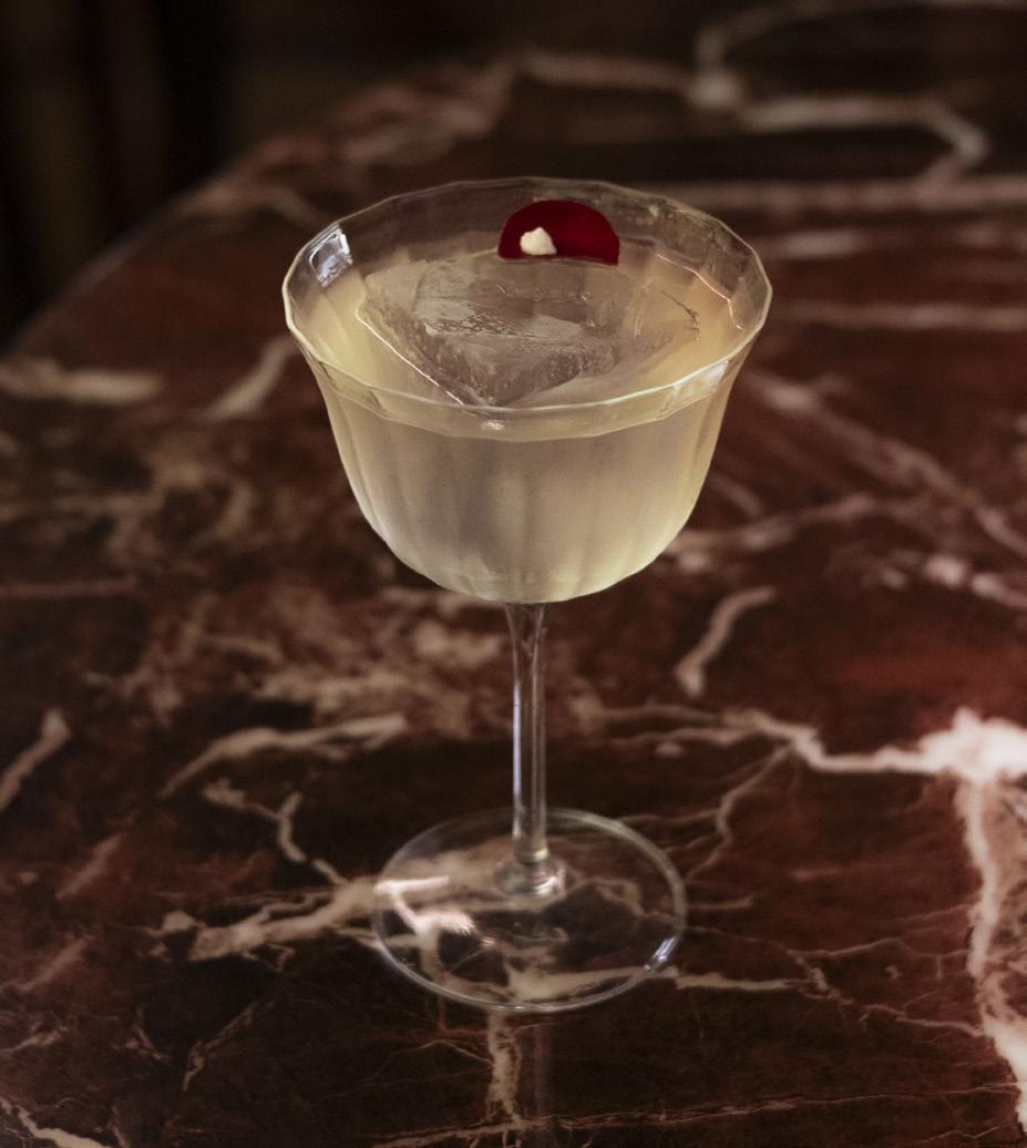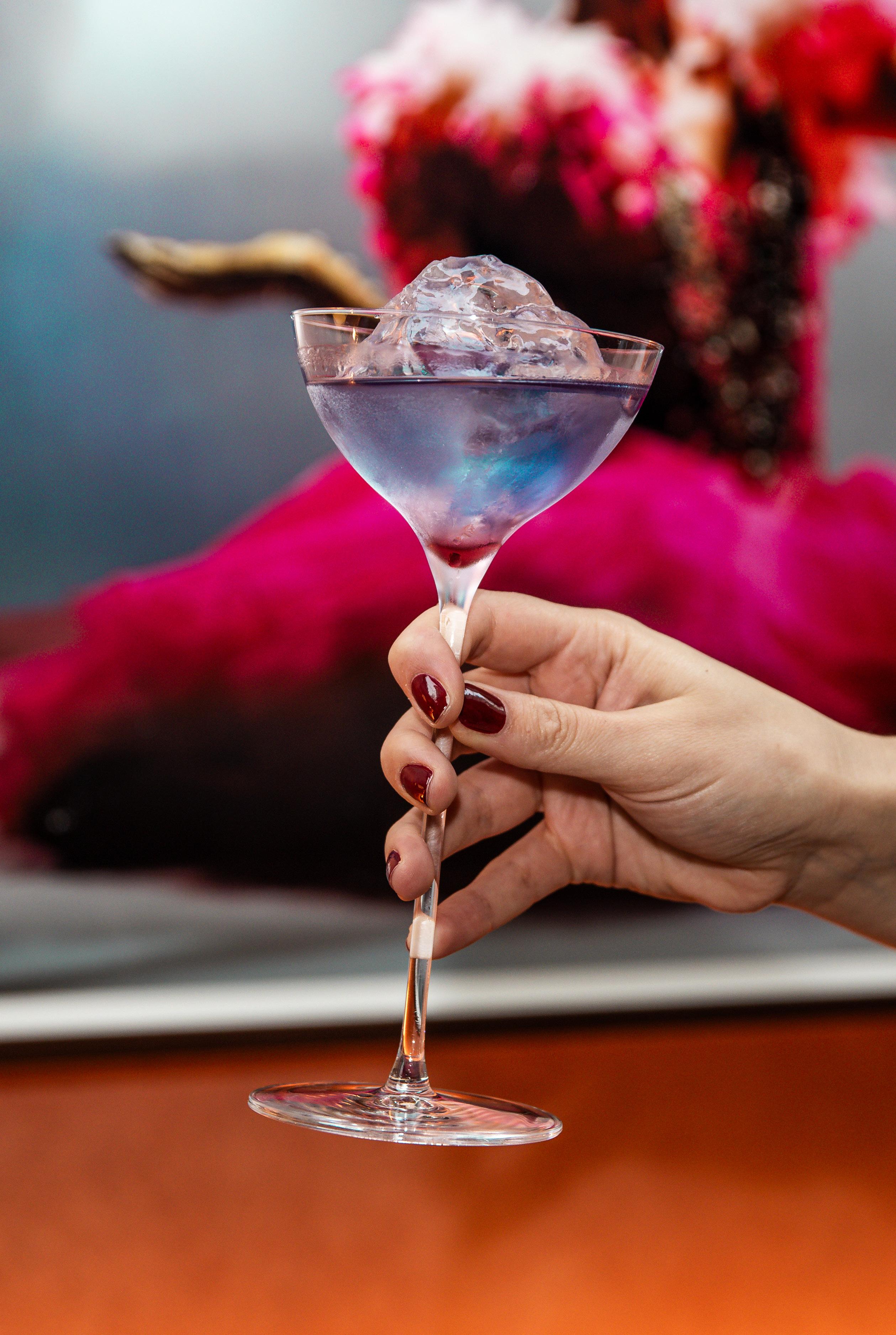 Elegant, aromatic and visually striking, the drink is served over a translucent hand-cut ice cube that slowly reveals its colour and character.