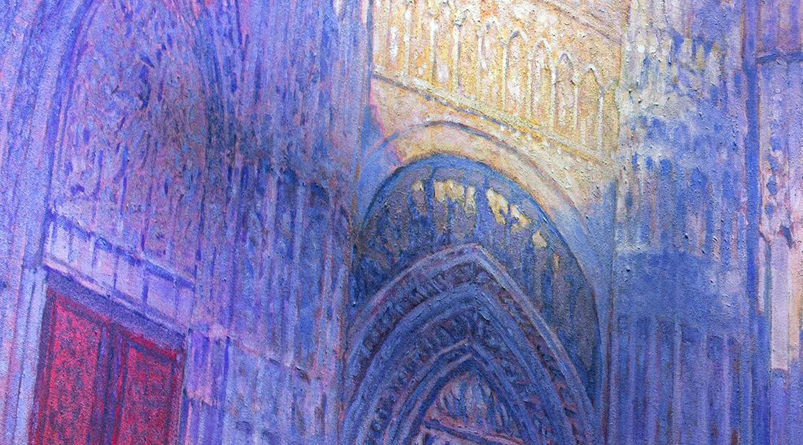The scenery opens up as if you were standing on Rouen’s cathedral square in 1894: the evening sun almost completely illuminates the façade of Notre-Dame de Rouen Cathedral