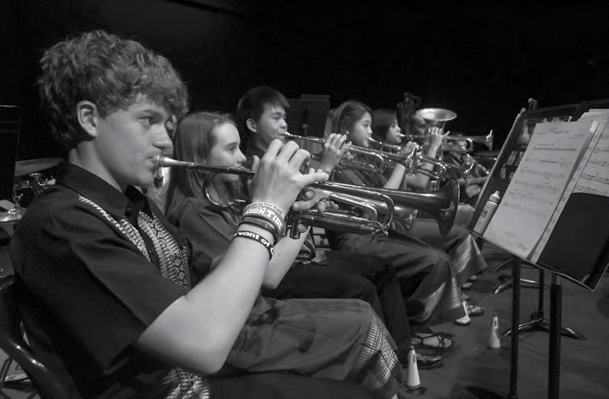 flavor and spice to its songs. Some bands included peaceful woodwinds and rowdy trombones to produce contrast and descriptive imagery in the listener’s mind.