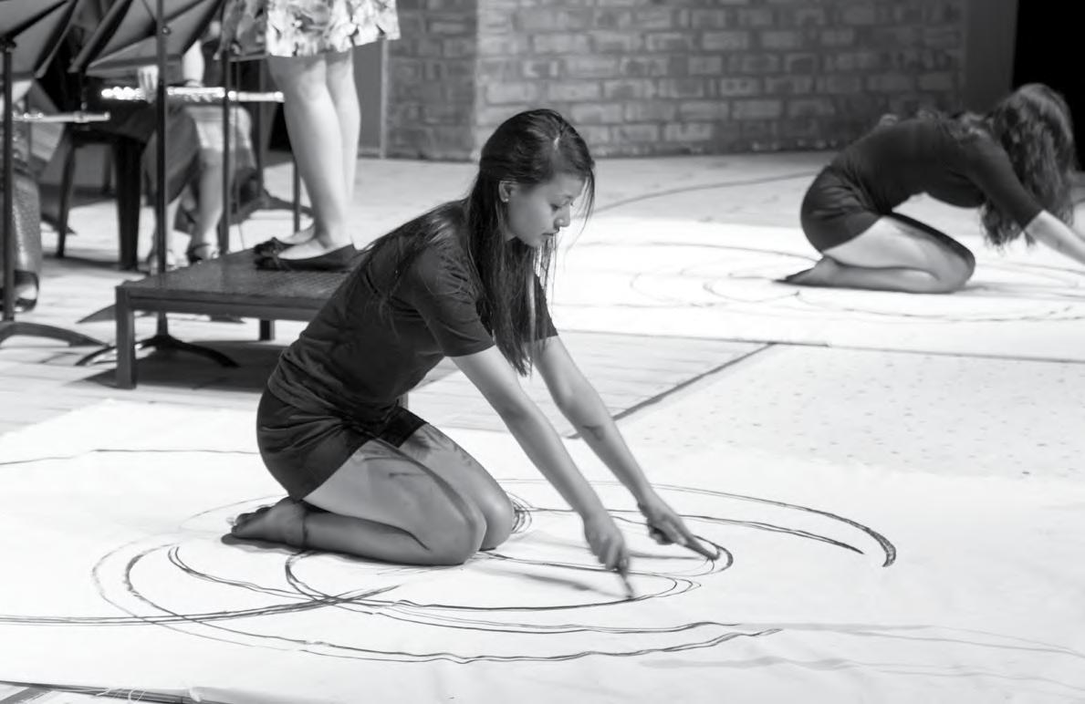 Swinging her arms around her body, Sugianto highlighted the fluid movement of the human body. Lee pulled herself up on her knees and brought her hands to a close as the music faded away. Bringing their charcoal circles to an end, Lee and Sugianto caused the audience to ponder the fragility of life. People appreciated the uniqueness of movement and the stories that only art could tell.