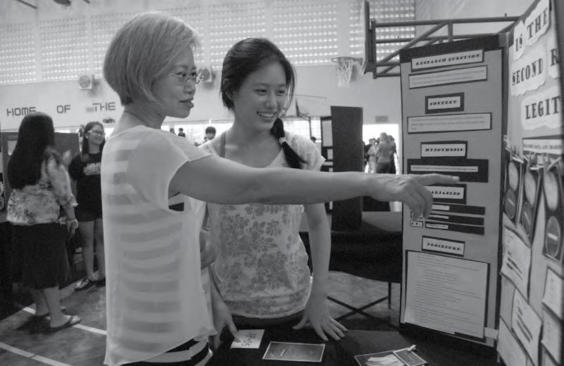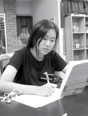 behind the podium, Ina Park (12) delivers her Valedictory address on fear. As a final message to their fellow classmates, Valedictorian Park and Salutatorian Stephanie Jones (12) each prepared an address for Commencement. Written and rewritten and practiced many times over under the coaching of Mrs. Debbie Chinn, the speeches displayed the advice and wisdom that they wanted to leave as a final profound takeaway for the Class of 2014.
