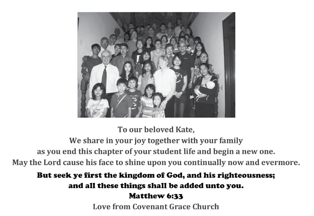 WITH a smile on her face, Sally Chang (12) enters the Baccal1aureate service. As the worship songs resounded through the hall and the speakers delivered their messages, the seniors knew they would never forget the special experiences they had shared throughout graduation week.