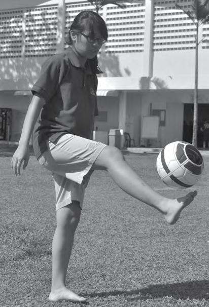 BURSTING into giggles, Preschool 4 students Anna-Sophia Combrink, Mia Kirk, and Adaiah De Visser bump along the edge of the tennis court in their trusty red wagon. During breaks and recess, elementary students found healthy activities to keep their minds stimulated.