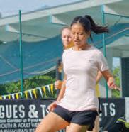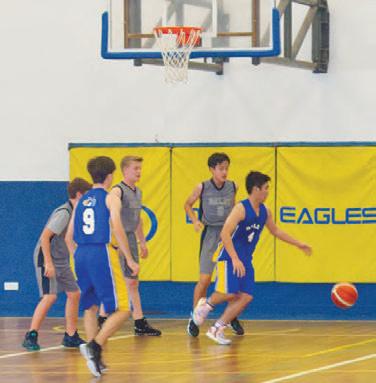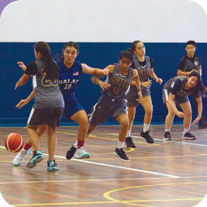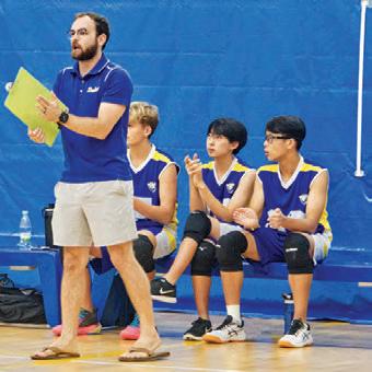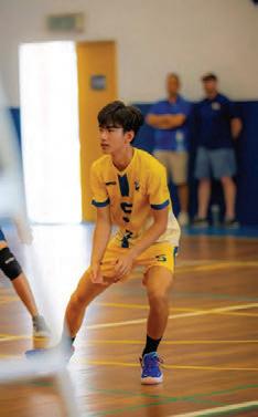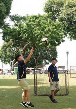 Raisinghisarminanticipation, DouglasKoay(11)jumpsto receivetheincomingvolleyball whileMarcusLim(10)stands aside,waitingforhischanceto receivetheball.Volleyballwas apopularchoiceforfriendsto playafterlunchandschool.